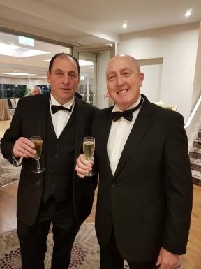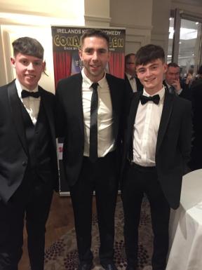 Dromara minors Michael McNeill and Eoin McEvoy with Marc O Se at the centenary celebrations.