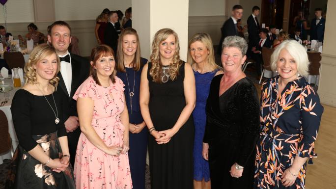 Rathfriland HS teaching and management staff who attended the Year 12 formal in the Slieve Donard Hotel on Friday evening. Veronica Fitzpatrick, David Ross (head of Year 12), Cathy McAllister, Cathy Stevenson, Laura Hawthorne, Lynne Gough, Amanda McCullough (principal) and Ruth Chalmers (vice-principal).
