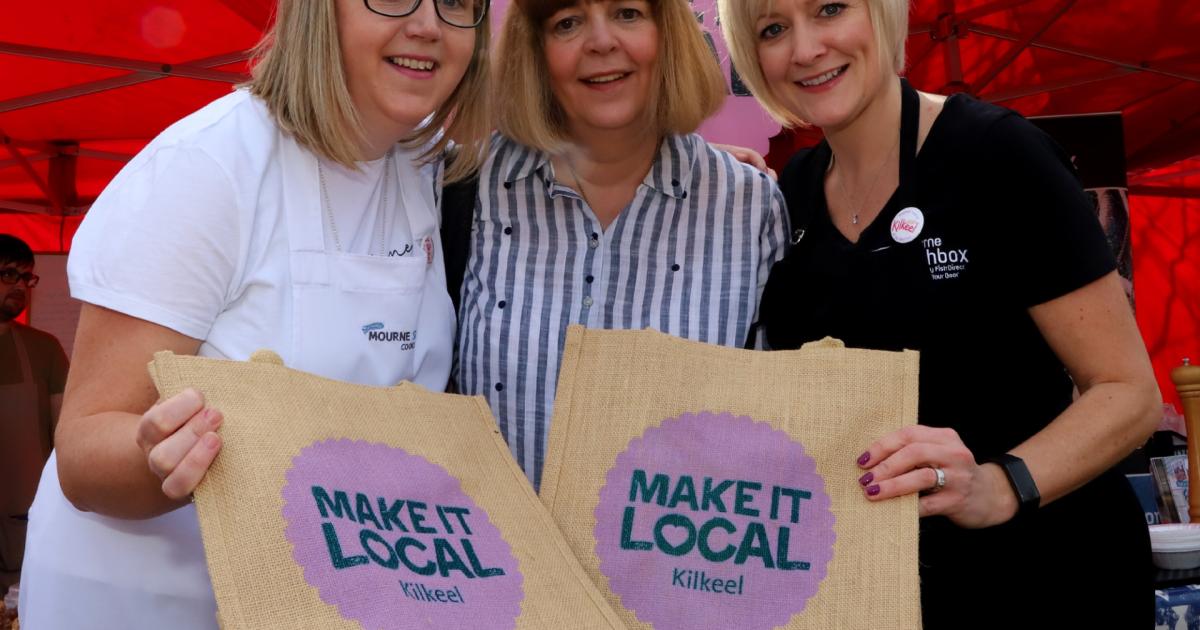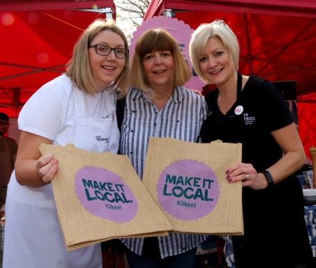 Donna McConnell representing Mourne Seafood Cookery School, Margaret Quinn project manager Newry Mourne and Down Council and Lisa McBride of Mourne Fishbox at the Farmers’ Market on Saturday.