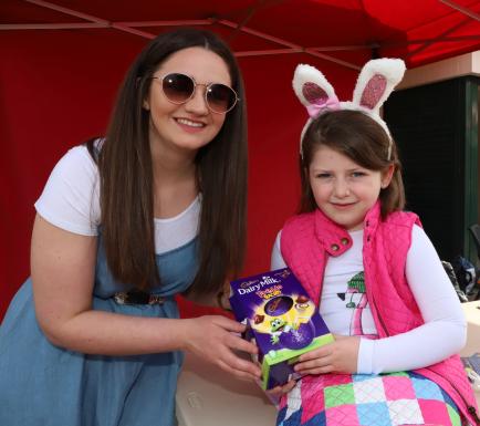 Suzie Herron and Sarah Bolton helping Tyler Sophie and Alayna on their Easter Egg Hunt throughout the town.